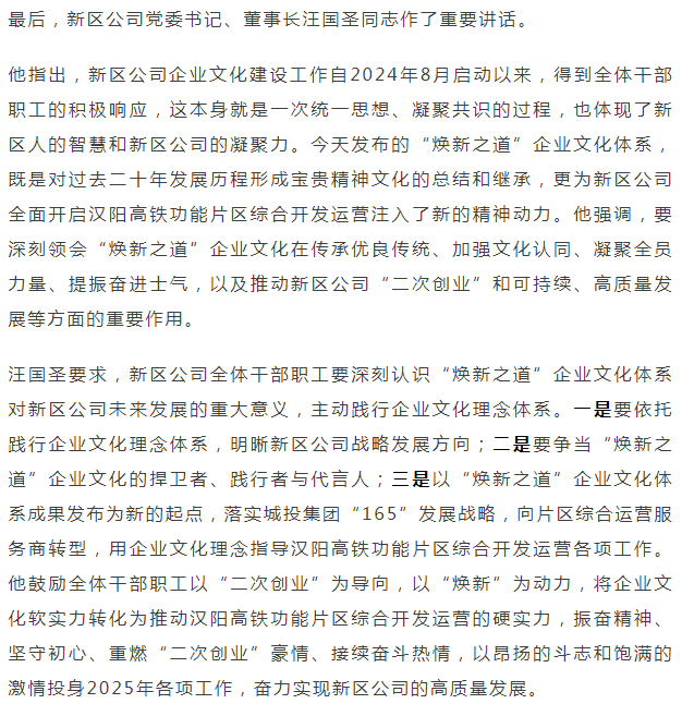 以企業(yè)文化凝聚共識 重燃“二次創(chuàng)業(yè)”激情——新區(qū)公司舉行“煥新之道”企業(yè)文化體系成果發(fā)布活動